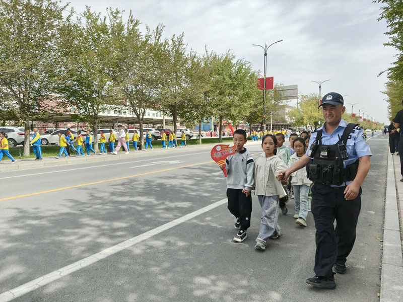 “小朋友,跟着叔叔走斑马线。”辅警拜尔哈提牵着低年级学生的手,耐心引导他们过马路。民警们一边指挥交通,引导车辆有序通行,一边及时制止追逐打闹、车辆抢行等可能危及学生安全的行为,用实际行动为学生们营造了安全、有序的出行环境。