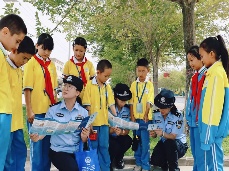 新疆讯(通讯:折树艳、孜拉江·木合塔尔)为切实保障校园安全,护航未成年人健康成长,9月19日,新疆和硕县公安局将校园护学与普法宣传紧密结合,以预防校园霸凌、普及《未成年人保护法》、防范电信诈骗、守护网络安全等为重点,开展了一系列形式多样、内容丰富的活动,为未成年人的成长撑起了一把坚实的“保护伞”。