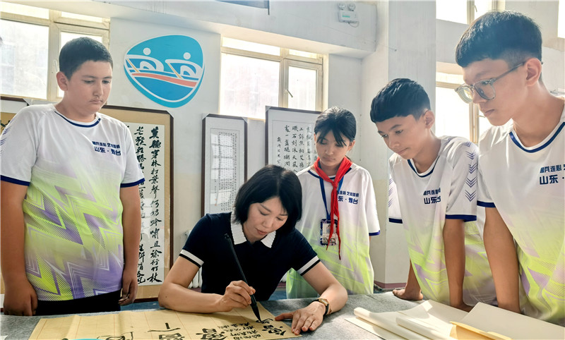 每周六上午,长廊内的“鲁疆文化小课堂”总是座无虚席。烟台援疆教师与当地文化骨干共同授课,开设书法、剪纸、民族舞蹈等特色课程,截至目前已累计培训各族群众400余人次。“我跟着烟台老师学会了剪纸和书法,现在能剪出伽师瓜、葡萄等特色图案。”12岁的学生热依拉·吐尔逊展示着自己的作品。此外,长廊还定期举办书画展览、非遗展演、农产品品鉴等活动。